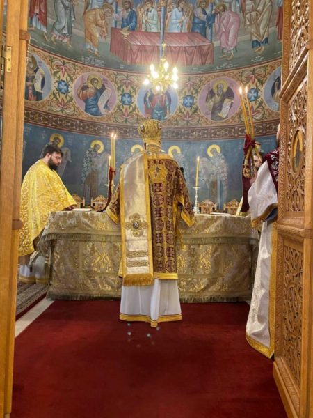 Ενώ, την κυριώνυμο ημέρα, Κυριακή 22 Νοεμβρίου, ο Σεβασμιώτατος Μητροπολίτης κ. Τιμόθεος, χοροστάτησε στην ακολουθία του Όρθρου και τέλεσε τη Θεία Λειτουργία.
