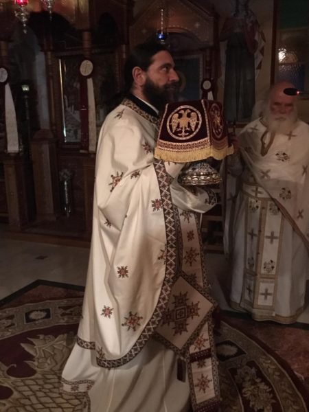 Κατά την ιερά Αγρυπνία, τέθηκε προς προσκύνηση και αγιασμό των πιστών απότμημα του ιερού λειψάνου του αγίου και ενδόξου οσιομάρτυρος Νικολάου του εν Βουναίνοις, το οποίο φυλάσσεται στο Ιερό Προσκύνημα.