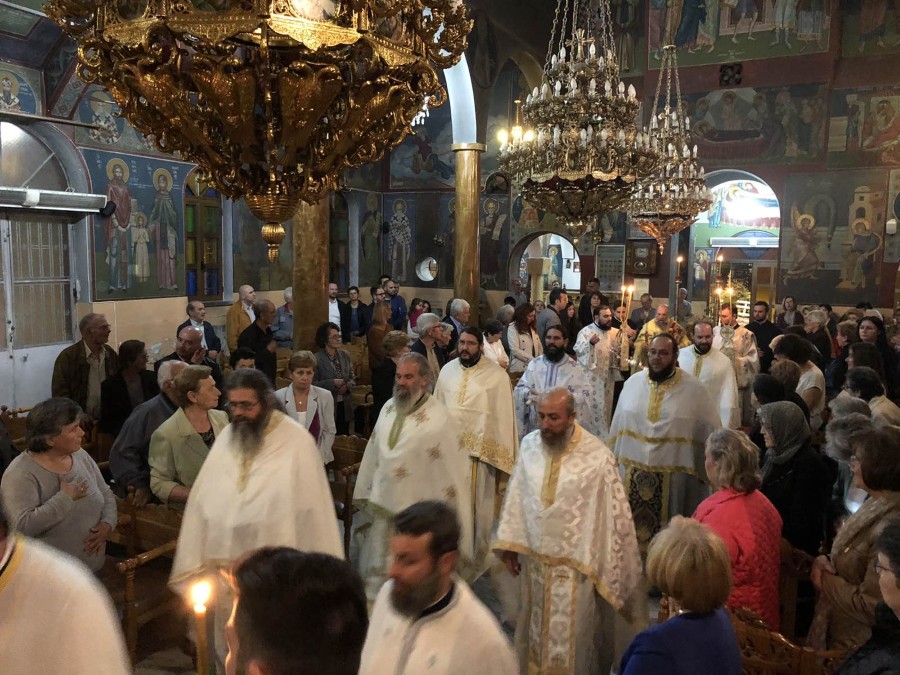 Στις 8:00΄μ.μ. τελέσθηκε η ακολουθία του Εσπερινού, εν συνεχεία η ακολουθία του Όρθρου και η Θεία Λειτουργία έως τις 12:30΄π.μ.