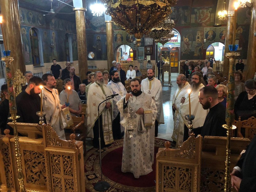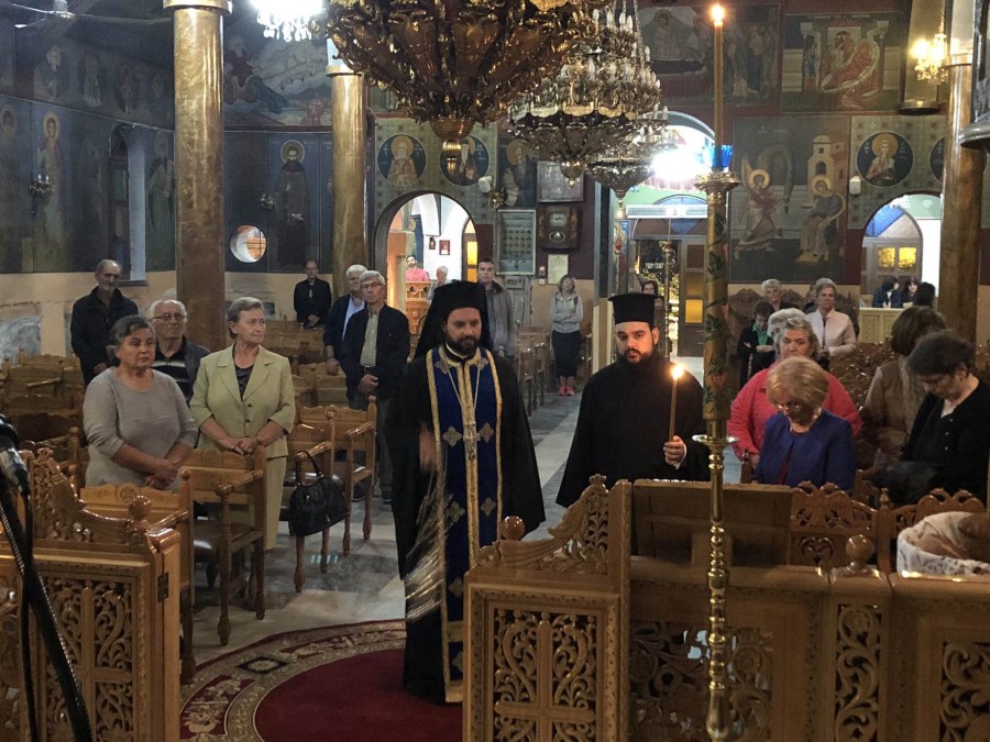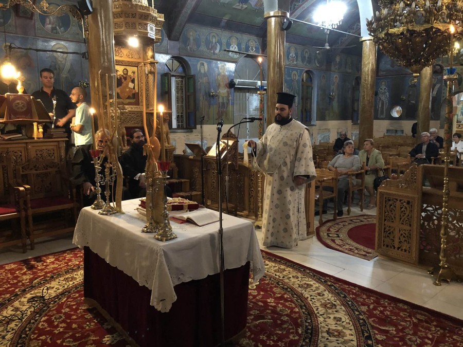 Στις 8:00΄μ.μ. τελέσθηκε η ακολουθία του Εσπερινού, εν συνεχεία η ακολουθία του Όρθρου και η Θεία Λειτουργία έως τις 12:30΄π.μ.