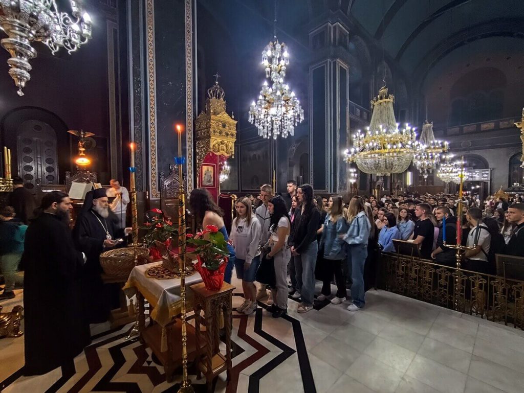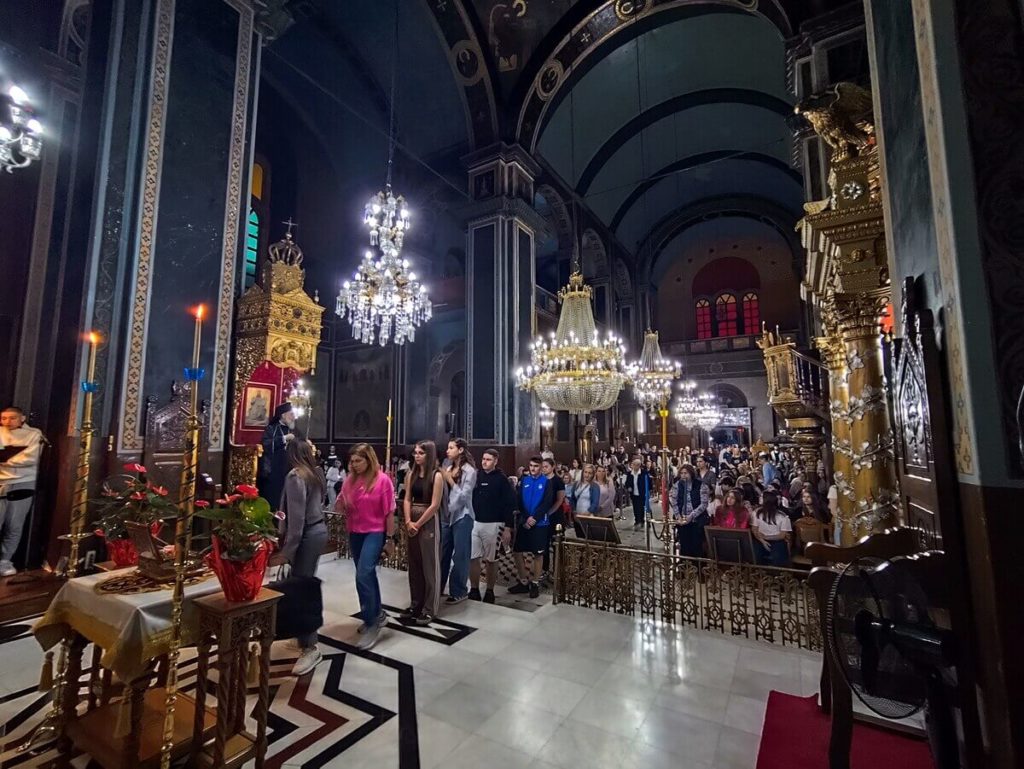 Μετά το πέρας της Παράκλησης, οι μαθητές και οι μαθήτριες προσκύνησαν ευλαβικά το Ιερό Λείψανο του Αγίου Νικολάου και στη συνέχεια έλαβαν από τον Σεπτό Ποιμενάρχη μας ένα αναμνηστικό, συνοδευόμενο από θερμές ευχές για καλή δύναμη.
