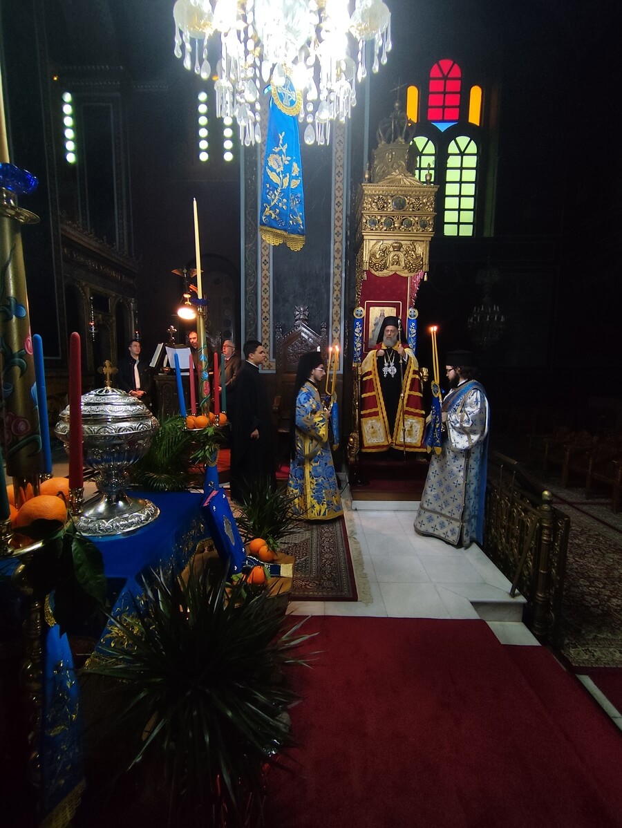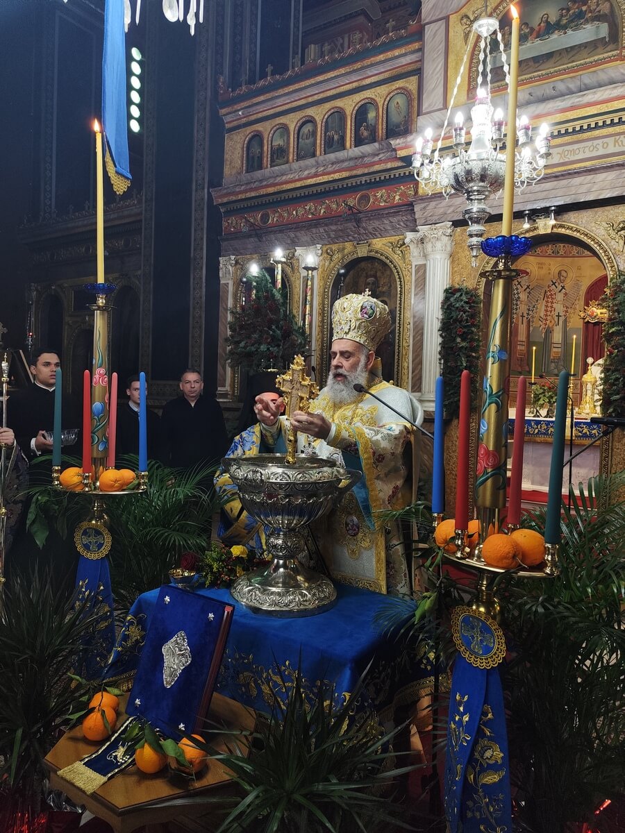 Ολοκληρώνοντας το θείο κήρυγμά του, απηύθυνε ευχές και Χρόνια Πολλά προς όλους τους παρευρισκομένους, και ιδιαιτέρως προς τον κύριο Υπουργό, τους κυρίους Υπουργούς, τον κύριο Δήμαρχο, τον κύριο Διευθυντή της Ελληνικής Αστυνομίας, τον κύριο Αναπληρωτή Αντιπεριφερειάρχη, τον κύριο Αναπληρωτή Περιφερειάρχη και τον κύριο Αντιπεριφερειάρχη, ευχόμενος η Χάρις του Θεού να τους αναγεννά «εις τα Ιορδάνια Ρείθρα» και να χαρίζει σε όλους πλούσια τον Θείο Φωτισμό.