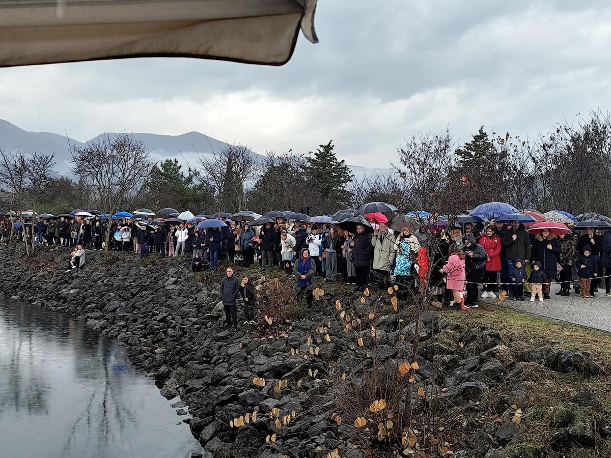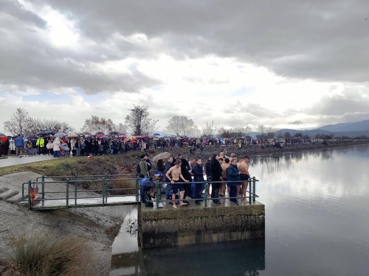 Εννέα τολμηροί κολυμβητές βούτηξαν στα παγωμένα νερά της λίμνης, προκειμένου να ανασύρουν τον Τίμιο Σταυρό και να λάβουν την ευλογία.