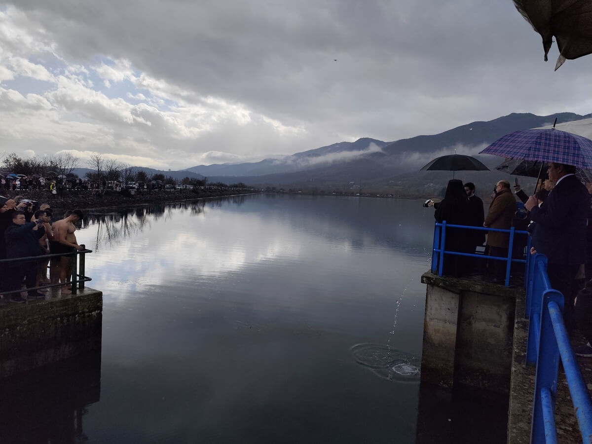 Μετά το πέρας της ιεράς ακολουθίας του Μεγάλου Αγιασμού, στις 12 το μεσημέρι, ο Σεβασμιώτατος μετέβη στην αναρρυθμιστική λίμνη Καρδίτσας, όπου ευλόγησε τα ύδατα για την καθιερωμένη κατάδυση του Τιμίου Σταυρού, παρουσία των τοπικών αρχών και πλήθους πιστών. Την τελετή πλαισίωσε η Φιλαρμονική Ορχήστρα του Δήμου Καρδίτσας, ενώ τιμές απέδωσε άγημα του ΚΕΣΝ.
