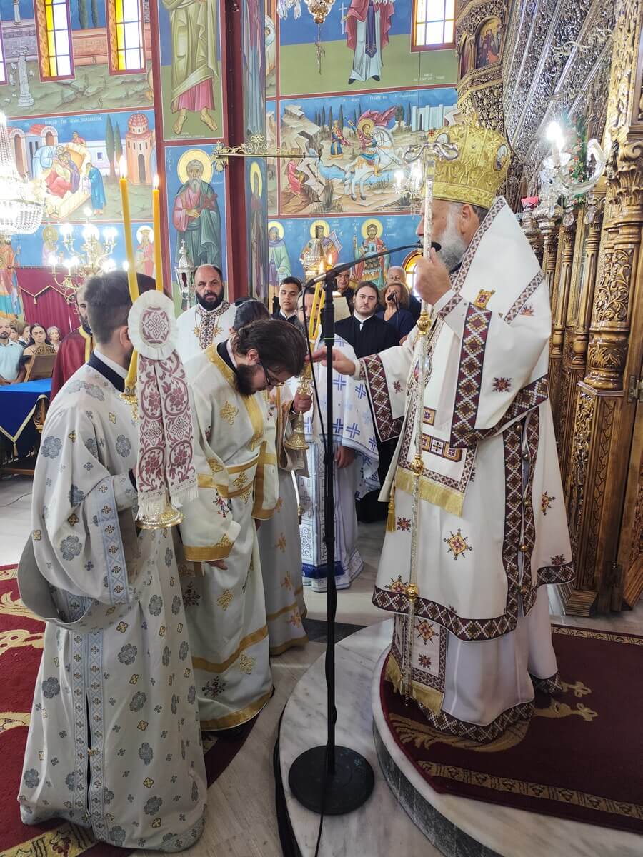 Προ της απολύσεως της Θείας Λειτουργίας ο Σεβασμιώτατος Μητροπολίτης μας, χειροθέτησε Πρωτοπρεσβύτερο τον πατέρα Λάζαρο Αλιβάνογλου και Αρχιδιάκονο τον διάκονο Δαμιανό Μπαρούτα και τους ευχήθηκε να εργάζονται με ταπείνωση και ευπρέπεια στην ζωή τους.