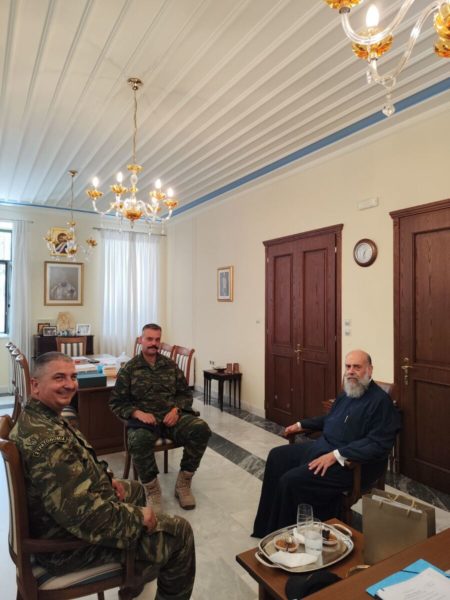 Ο Σεβασμιώτατος Μητροπολίτης Θεσσαλιώτιδος και Φαναριοφερσάλων κ. Τιμόθεος δέχθηκε το πρωί της Πέμπτης 27 Ιουνίου 2024, στο Επισκοπείο εθιμοτυπική επίσκεψη από τον Διοικητή του Κέντρου Εκπαίδευσης Στρατονομίας Ρούσσου Αντισυνταγματάρχη Πεζικού κ. Στέλιο Γαρίτο, συνοδευόμενος από τον Υπολοχαγό κ. Ζώτο.