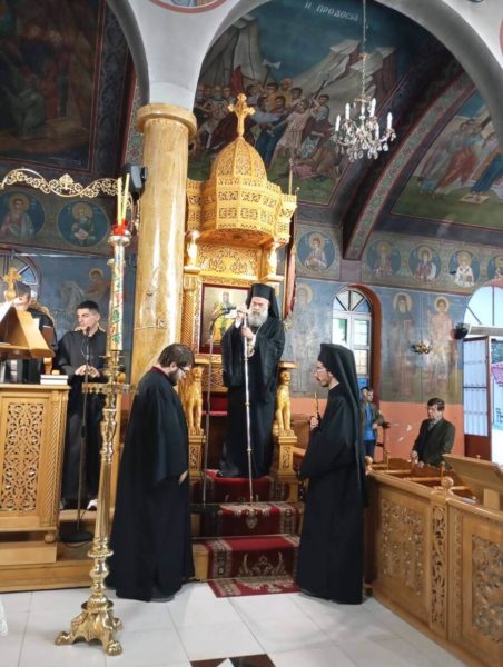 Και η προσευχή μας, και η διάθεσή μας, και οι ευχές μας ολοκάρδιες είναι και προς τον αδελφό μας και αγαπητό συνεργό εν Κυρίω, τον Πατέρα Θωμά, μαζί με τις προσευχές και των αδελφών συμπρεσβυτέρων, ώστε και εκείνος να έχει αφοβία στη ζωή του, ειρήνη στη ζωή του, Ανάσταση και χαρά με την συνεχή παρουσία του Αναστημένου Χριστού στη ζωή του, ώστε να διακονεί τα Μυστήρια της Βασιλείας, τον λαό του Θεού, να αγιάζεται από αυτήν την διακονία και η Εκκλησία του Χριστού να τον χαίρεται και να αγάλλεται με την παρουσία του, την ευπρεπή και ταπεινή, μέσα στον χώρο της τοπικής μας Ιεράς Μητροπόλεως και της Εκκλησίας ολοκλήρου.