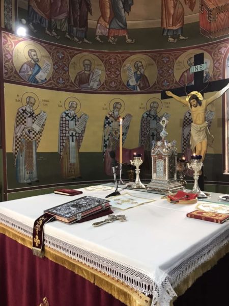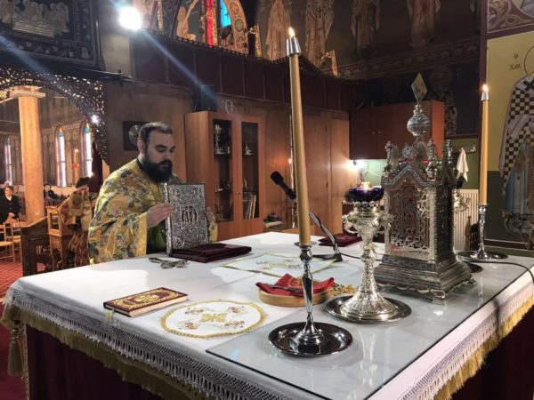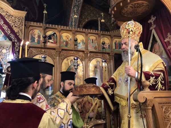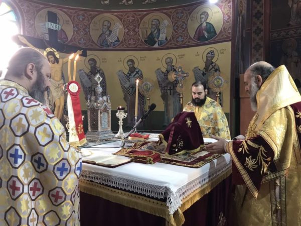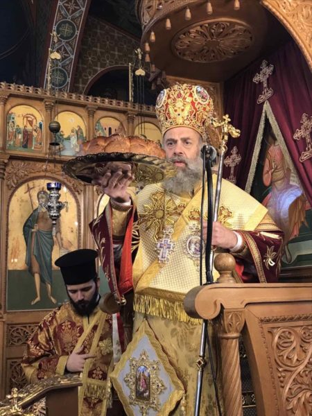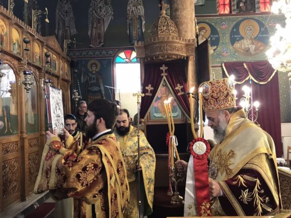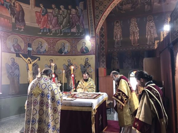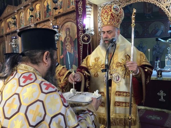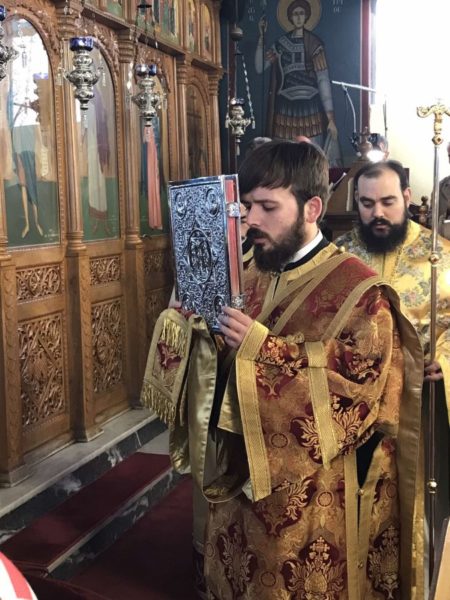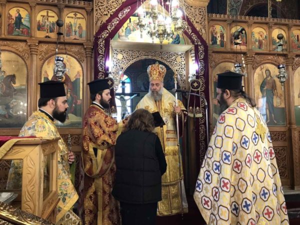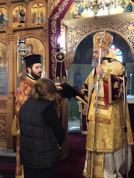 Προ της Απολύσεως, ευλόγησε το κόλλυβο προς τιμήν του Αγίου και κατέστησε εις εκκλησιαστική διακονία – νεοκώρο την κ. Χαρίκλεια Παπατριανταφύλλου.