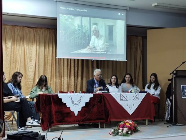 Στην τιμητική εκδήλωση, μαθητές/τριες του σχολείου απήγγειλαν ποιήματά του αλλά και απόλαυσαν τον ίδιο τον ποιητή να ερμηνεύει γνωστά ποιήματά του μετουσιώνοντας σε πράξη την πεποίθησή του ότι η απαγγελία συνιστά ερμηνεία. Σε δεύτερο επίπεδο του απηύθυναν ερωτήσεις, μέσω των οποίων αναδείχτηκαν η δύναμη και η δυναμική της ποίησης, η προσωπική ευαισθησία ως «αντικλείδι» της συγγραφικής αλλά και της αναγνωστικής μέθεξης, η αξία του γλωσσικού πλουραλισμού, της πανσπερμίας λέξεων, στις ποιητικές αποτυπώσεις αλλά και στη διατήρηση της ιστορικής μνήμης, η ποιητική οπτική ως στοιχείο ενεργούς πολιτειότητας, η εκλέπτυνση της ψυχής ως παιδαγωγικό εφόδιο.