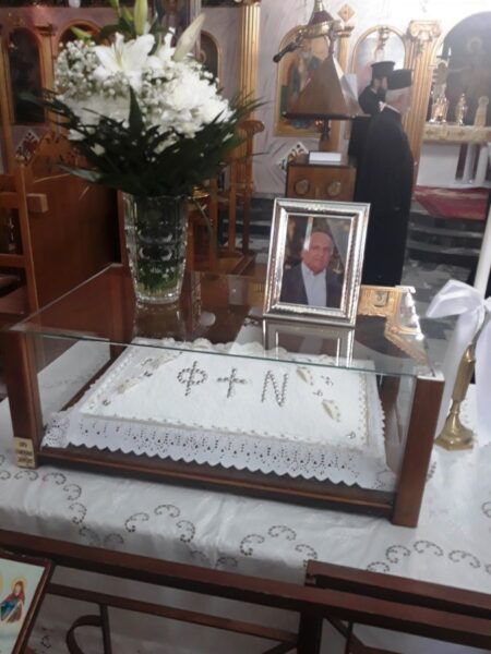 Προ της απολύσεως, τέλεσε το ετήσιο ιερό μνημόσυνο υπέρ αναπαύσεως του μακαριστού Φωτίου, κατά σάρκα πατρός του π. Νικολάου Ντάφου.