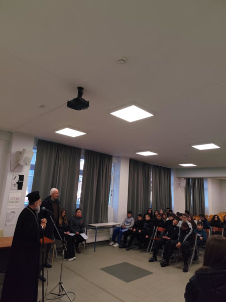 Κλείνοντας την ομιλία του, και ενόψει των επερχόμενων εορτών, ο Σεβασμιώτατος αναφέρθηκε στη μεγάλη εορτή των Χριστουγέννων, καθώς τα σχολεία ετοιμάζονται να κλείσουν για τις διακοπές. Μέσα από ζωντανό διάλογο με τους μαθητές, τους κάλεσε να σκεφθούν και να εκφράσουν τι σημαίνουν για τον καθένα τα Χριστούγεννα, δίνοντάς τους την ευκαιρία να συμμετάσχουν ενεργά και να καταθέσουν τις σκέψεις τους. Με αυτόν τον τρόπο, η συνάντηση ολοκληρώθηκε σε κλίμα επικοινωνίας και ουσιαστικού προβληματισμού, αναδεικνύοντας το αληθινό νόημα της εορτής.
