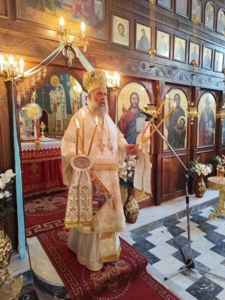 Το εσπέρας της 3ης Αυγούστου, εορτή επί τη Μνήμη των εν Εφέσω Αγίων Επτά Παίδων, χοροστάτησε στην ακολουθία του Εσπερινού στον Ιερό Ναό Αγίου Νικολάου Καλής Κώμης. “Η νηστεία δίνει στον πνευματικό αγωνιστή την καθαρότητα και την δύναμη και την ετοιμότητα του νου, που αποτελούν την βάση σε αυτό το είδος του πνευματικού πολέμου. Άλλωστε, ο αγώνας αυτός δεν γίνεται «πρός σάρκα καί αἷμα, ἀλλά πρός τάς ἀρχάς, πρός τάς ἐξουσίας, πρός τούς κοσμοκράτορας τοῦ σκότους τοῦ αἰῶνος τούτου». (Ἐφεσ. 6,12).