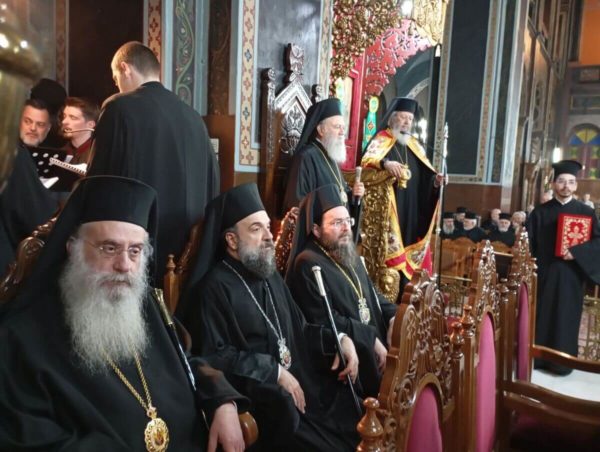 “Σεβασμιώτατε Μητροπολίτα Χαλκίδος, Ιστιαίας και Βορείων Σποράδων κ. Χρυσόστομε, Σεβασμιώτατε Μητροπολίτα Μεσσηνίας κ. Χρυσόστομε. Σεβασμιώτατε Μητροπολίτα Ιλίου, Αχαρνών και Πετρουπόλεως κ. Αθηναγόρα, Σεβασμιώτατε Μητροπολίτα Κηφισίας, Αμαρουσίου, Ωρωπού και Μαραθώνος κ. Κύριλλε, Σεβασμιώτατε Μητροπολίτα Γλυφάδας, Ελληνικού, Βούλας, Βουλιαγμένης και Βάρης κ. Αντώνιε. Σεβασμιώτατε Μητροπολίτα Νικοπόλεως και Πρεβέζης κ. Χρυσόστομε, Σεβασμιώτατε Μητροπολίτα Κίτρους, Κατερίνης και Πλαταμώνος κ. Γεώργιε. Σεβασμιώτατε Μητροπολίτα Τρίκκης, Γαρδικίου και Πύλης κ. Χρυσοστόμε, Σεβασμιώτατε Μητροπολίτα Σταγών και Μετεώρων κ. Θεόκλητε, Σεβασμιώτατε Μητροπολίτα Θεσσαλονίκης, κ. Φιλόθεε. Σεβασμιώτατε Μητροπολίτα Λαγκαδά, Λητής και Ρεντίνης κ. Πλάτωνα, Σεβασμιώτατε Μητροπολίτα Πολυανής και Κιλκισίου κ. Βαρθολομαίε. Σεβασμιώτατε Μητροπολίτα Αμοργού και Νήσων κ. Αμφιλόχιε, Σεβασμιώτατε Μητροπολίτα Μαντινείας και Κυνουρίας κ. Επιφάνιε, Θεοφιλέστατε άγιε Σκοπέλου κ. Νικόδημε, ευχαριστούμε πολύ για την εδώ ευλογητή παρουσία σας ανάμεσά μας.