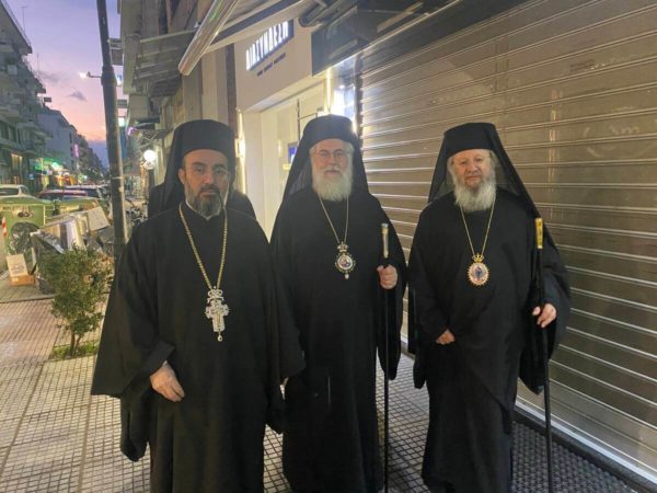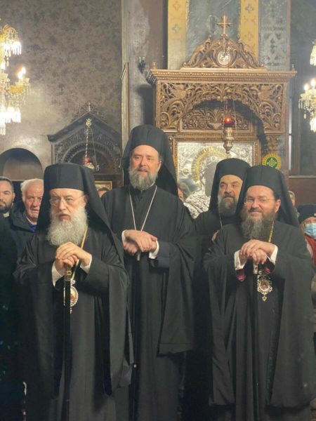 “Σεβασμιώτατε Μητροπολίτα Χαλκίδος, Ιστιαίας και Βορείων Σποράδων κ. Χρυσόστομε, Σεβασμιώτατε Μητροπολίτα Μεσσηνίας κ. Χρυσόστομε. Σεβασμιώτατε Μητροπολίτα Ιλίου, Αχαρνών και Πετρουπόλεως κ. Αθηναγόρα, Σεβασμιώτατε Μητροπολίτα Κηφισίας, Αμαρουσίου, Ωρωπού και Μαραθώνος κ. Κύριλλε, Σεβασμιώτατε Μητροπολίτα Γλυφάδας, Ελληνικού, Βούλας, Βουλιαγμένης και Βάρης κ. Αντώνιε. Σεβασμιώτατε Μητροπολίτα Νικοπόλεως και Πρεβέζης κ. Χρυσόστομε, Σεβασμιώτατε Μητροπολίτα Κίτρους, Κατερίνης και Πλαταμώνος κ. Γεώργιε. Σεβασμιώτατε Μητροπολίτα Τρίκκης, Γαρδικίου και Πύλης κ. Χρυσοστόμε, Σεβασμιώτατε Μητροπολίτα Σταγών και Μετεώρων κ. Θεόκλητε, Σεβασμιώτατε Μητροπολίτα Θεσσαλονίκης, κ. Φιλόθεε. Σεβασμιώτατε Μητροπολίτα Λαγκαδά, Λητής και Ρεντίνης κ. Πλάτωνα, Σεβασμιώτατε Μητροπολίτα Πολυανής και Κιλκισίου κ. Βαρθολομαίε. Σεβασμιώτατε Μητροπολίτα Αμοργού και Νήσων κ. Αμφιλόχιε, Σεβασμιώτατε Μητροπολίτα Μαντινείας και Κυνουρίας κ. Επιφάνιε, Θεοφιλέστατε άγιε Σκοπέλου κ. Νικόδημε, ευχαριστούμε πολύ για την εδώ ευλογητή παρουσία σας ανάμεσά μας.