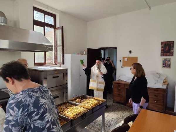 Στην συνέχεια και ώρα 12.00 μ. έφτασε στο Αγναντερό, όπου τέλεσε τον Αγιασμό στο εκεί “Σπίτι Αγάπης” και μίλησε για την έννοια του εθελοντισμού και της διακονίας στους κόλπους της Εκκλησίας.