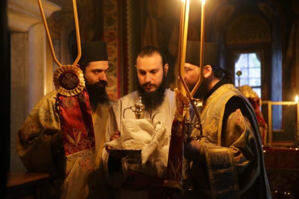 Κατά το εσπέρας της αυτής ημέρας, μετά την ακολουθία του Εσπερινού προέστη του μνημοσύνου που ετελέσθη προς ανάπαυσιν των κεκοιμημένων αδελφών.