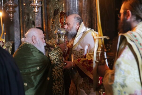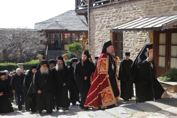 Μετά την Θεία Λειτουργία, παρετέθη κέρασμα στο Συνοδικό της Μονής, και αντηλλάγησαν προσφωνήσεις και ευχές από τον άγιο Θεσσαλιώτιδος και τον Καθηγούμενο της Μονής, που ευχαρίστησε ιδιαιτέρως τον Σεβασμιώτατο.