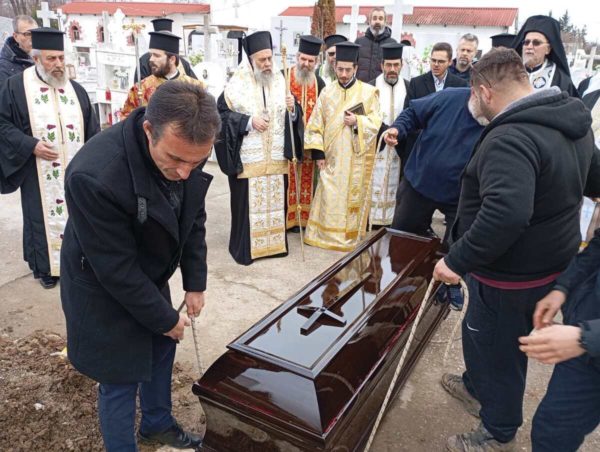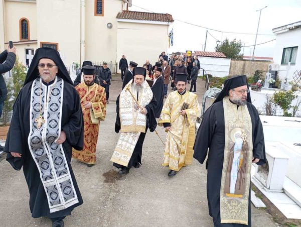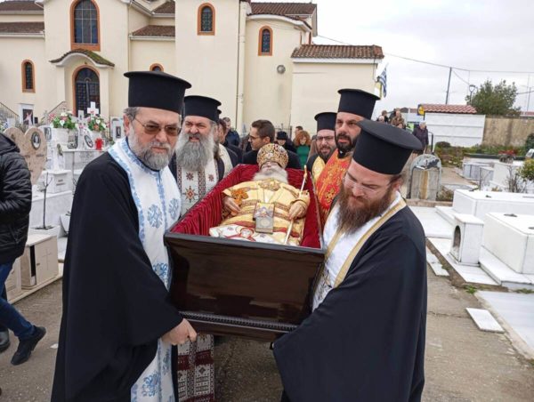 Μετά το πέρας του ιερού μνημοσύνου στον Κοιμητηριακό Ναό, οι κληρικοί της Ιεράς Μητροπόλεως Θεσσαλιώτιδος μετέφεραν το σκήνωμα όπου ετάφη στη γη της Καρδίτσας.