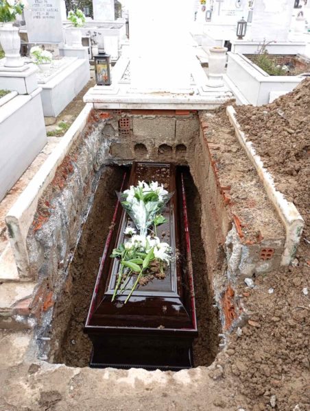 Μετά το πέρας του ιερού μνημοσύνου στον Κοιμητηριακό Ναό, οι κληρικοί της Ιεράς Μητροπόλεως Θεσσαλιώτιδος μετέφεραν το σκήνωμα όπου ετάφη στη γη της Καρδίτσας.