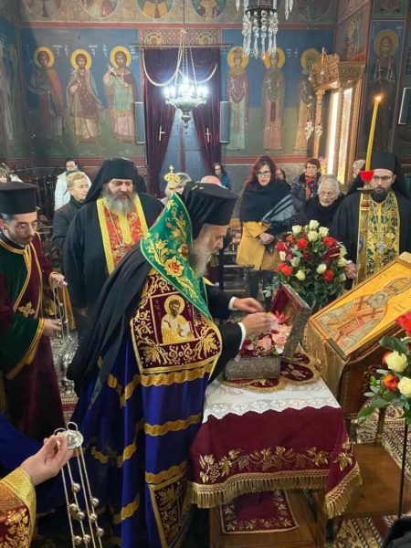 Τέλος, τον ευχαρίστησε, γιατί έως και Κυριακή 22 Δεκεμβρίου, θα υπάρχει ανάμεσα στο ποίμνιο της Μητροπόλεως όχι μόνο πνευματικώς αλλά και σωματικώς ο άγιος για να προσκυνούν και να αγιάσει και απέστειλε την αγάπη και τις ευχαριστίες, την ευγνωμοσύνη και την μετάνοια στον Σεβασμιότατο Άγιο Ποιμενάρχη τους.