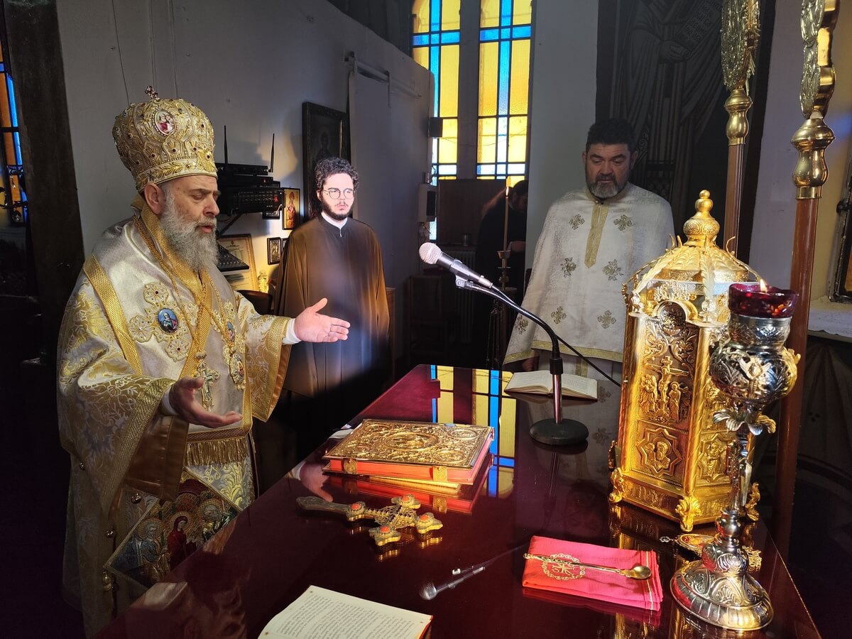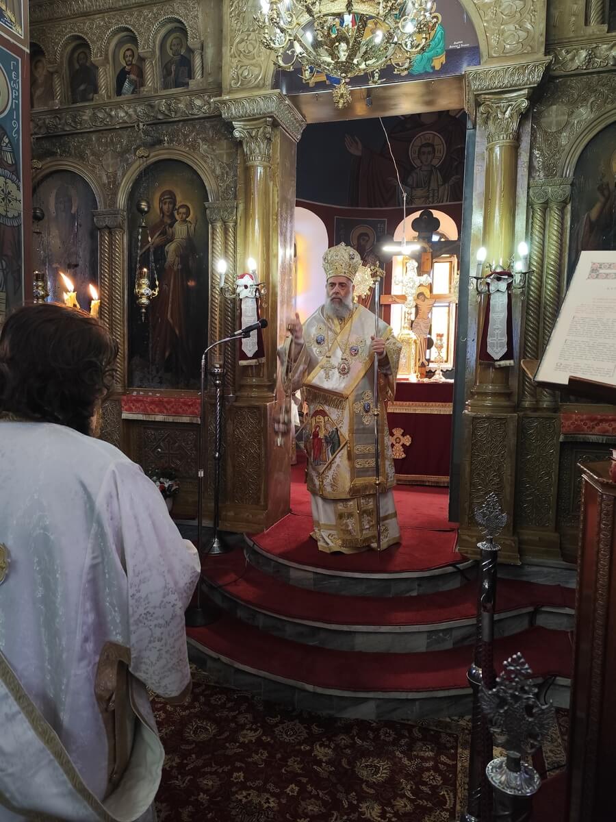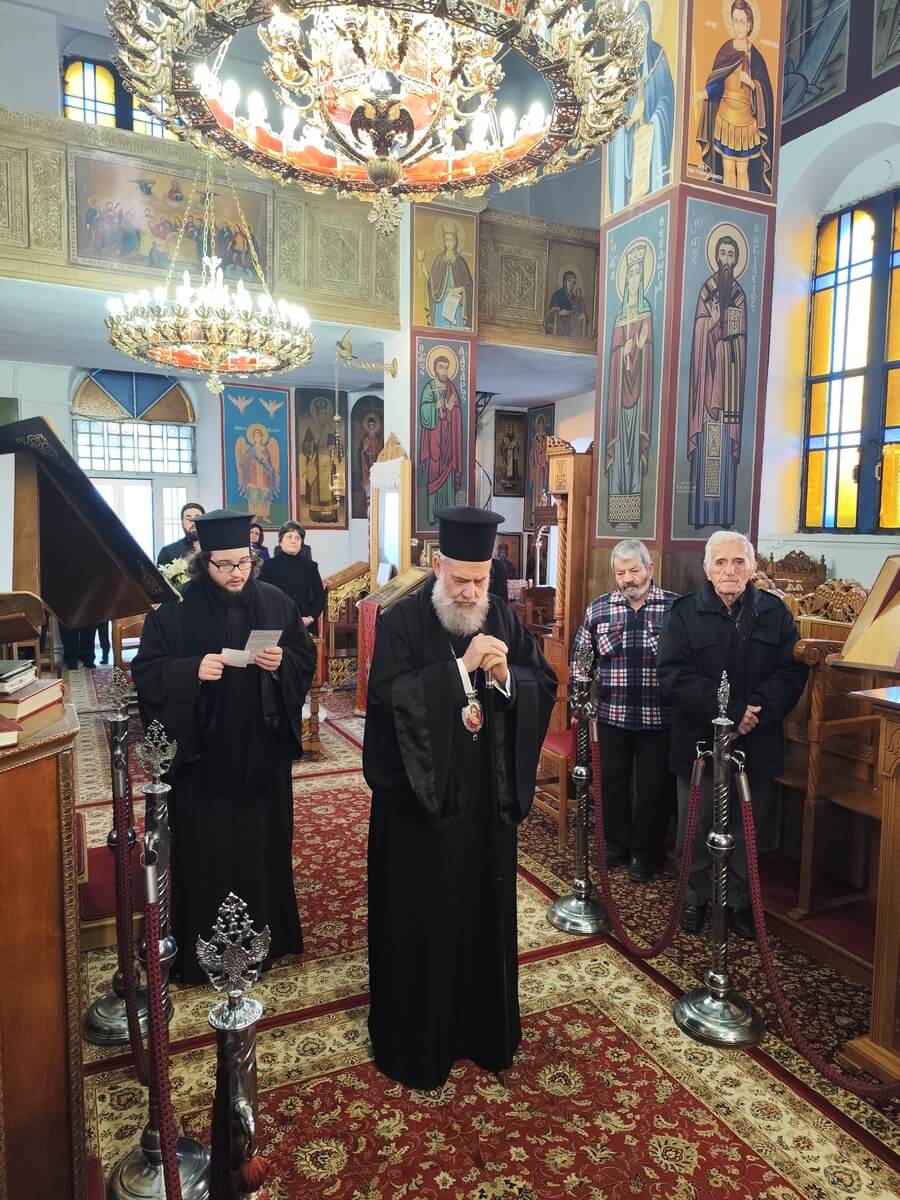 Τέλος, ο Σεβασμιώτατος αναφέρθηκε στη Θεία Λειτουργία που τελείται και για την ανάπαυση της ψυχής του κοιμηθέντος εφημερίου της ενορίας, του αγαπητού πατρός Δημητρίου, εκφράζοντας την προσευχή όλων ο Κύριος να τον αναπαύσει, να τον απαλλάξει από τα γήινα και να τον κατατάξει στη χαρά των πρωτοτόκων, ενώ οι πιστοί να διατηρούν ζωντανή τη μορφή και τη ζωή του στη μνήμη τους.