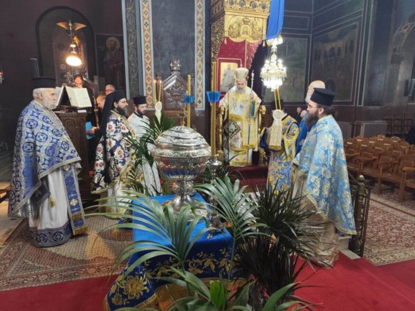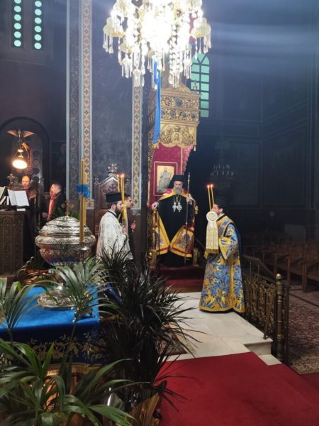 Ο Σεβασμιώτατος Μητροπολίτης Θεσσαλιώτιδος και Φαναριοφερσάλων κ. Τιμόθεος χοροστάτησε στην ακολουθία του Όρθρου, τέλεσε την Θεία Λειτουργία και την Ιερά Ακολουθία του Μεγάλου Αγιασμού παρουσία των τοπικών αρχών, φορέων και πλήθος πιστών στον Ιερό Μητροπολιτικό Ναό Αγίων Κωνσταντίνου και Ελένης Καρδίτσης.