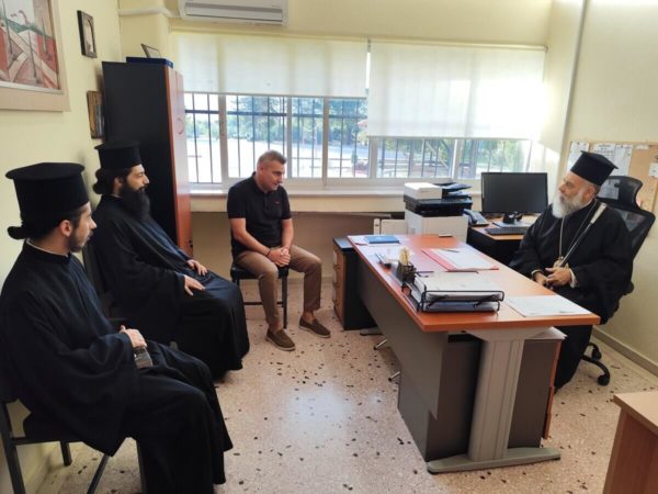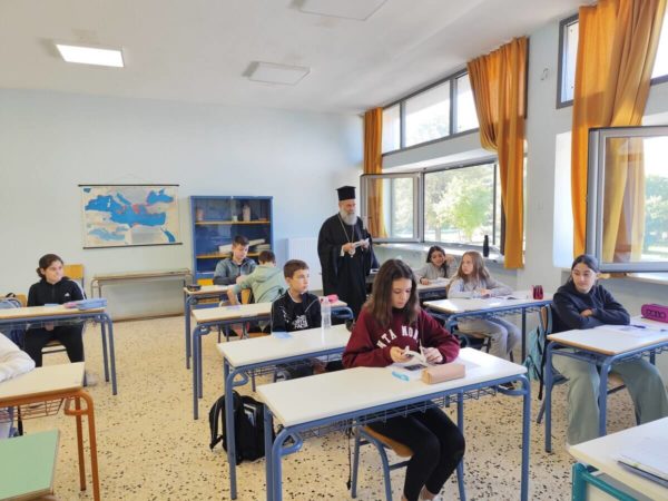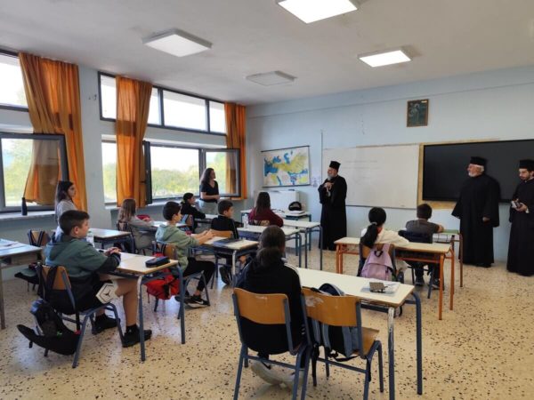 Ο Σεβασμιώτατος Μητροπολίτης Θεσσαλιώτιδος και Φαναριοφερσάλων κ. Τιμόθεος, συνεχίζοντας τις ποιμαντικές του επισκέψεις σε σχολικές μονάδες, την Δευτέρα 14 Οκτωβρίου βρέθηκε κοντά στους μαθητές της Α’ τάξης των Γυμνασίων Μουζακίου και Μαγούλας.