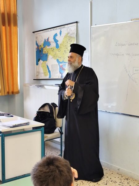 Ανέφερε επίσης ότι το σχολείο είναι ένας χώρος γνώσεων και επικοινωνίας. Μέσα από αυτό θα μπορέσουν να διαμορφώσουν τον χαρακτήρα τους και να πάρουν εφόδια στη ζωή τους. Προσφέρει εκτός από την γνώση, μεθόδους κοινωνικοποίησης, άμιλλα και πολλά χαρίσματα. Και αυτά τα χαρίσματα, η Εκκλησία τα ονομάζει τάλαντα. Να έχουν «τάλαντα», να είναι χαρισματικοί άνθρωποι. Να μάθουν να ζουν ο ένας με τον άλλον και να αγαπούν τους συνανθρώπους τους, ας έχουν αδυναμίες. Όλοι άλλωστε έχουν αδυναμίες. Να φροντίζουν τους εαυτούς τους και τους συνοδοιπόρους τους που περπατάνε μαζί τους σ’ αυτή τη ζωή.