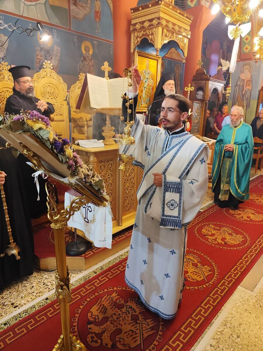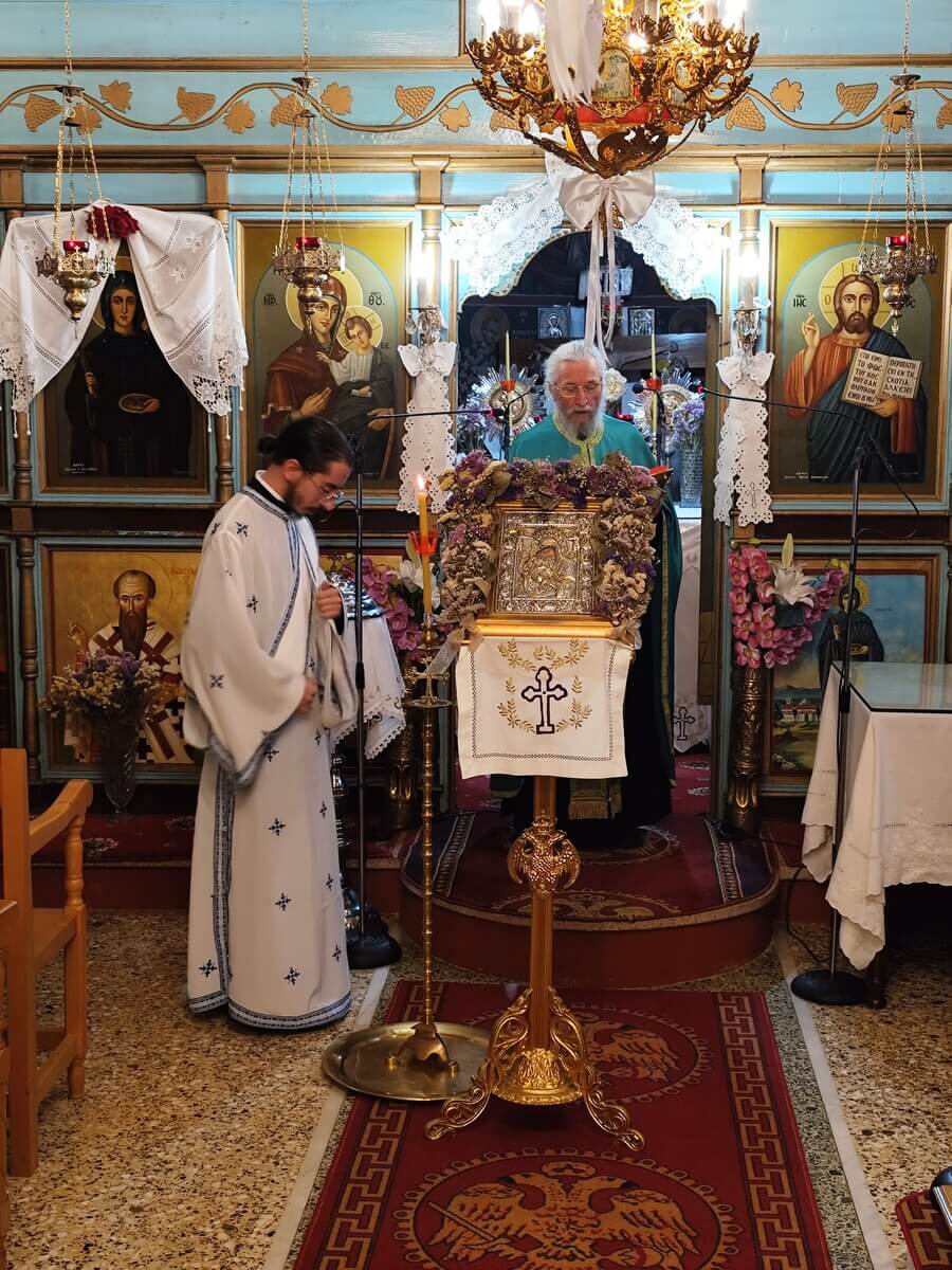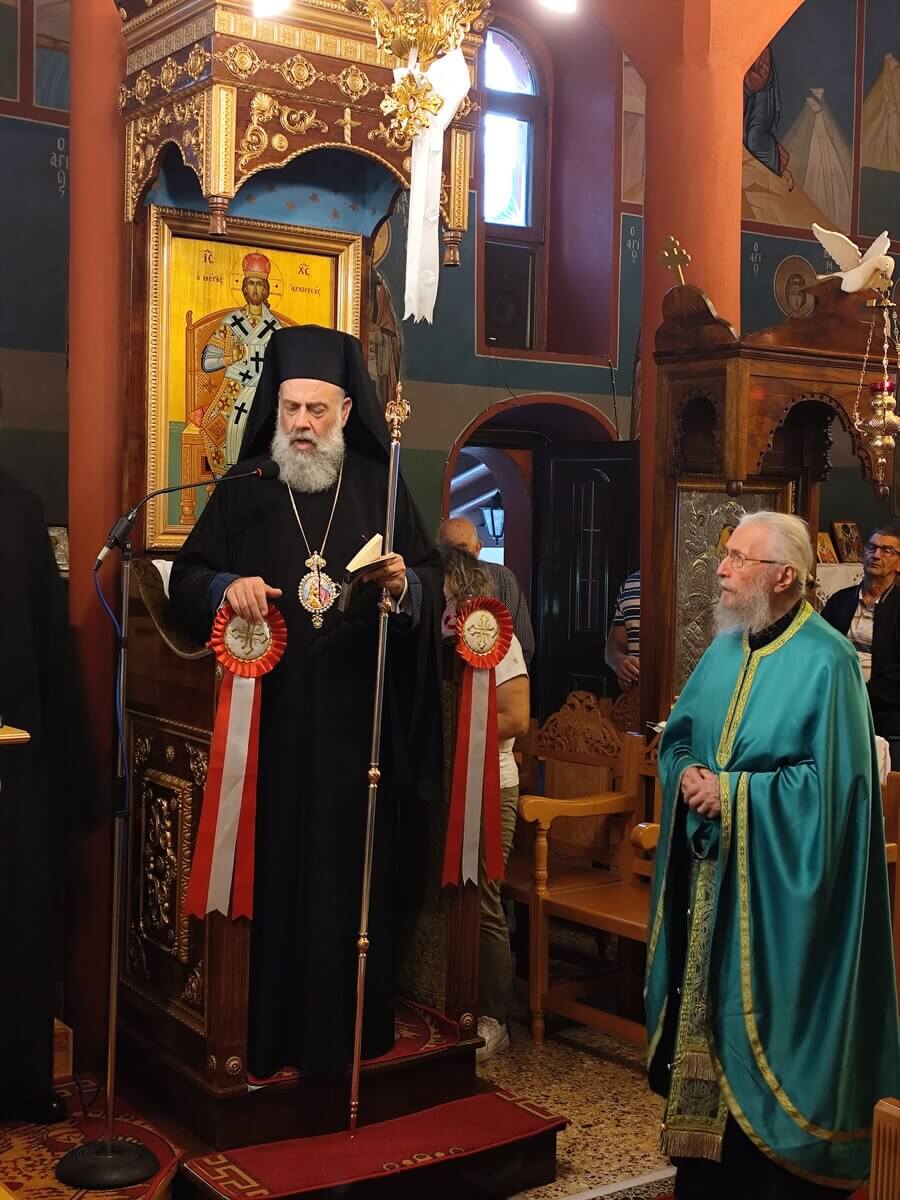 Χαίρομαι πάρα πολύ που είμαστε απόψε εδώ μαζί και τελέσαμε την πρώτη Παράκληση για το υπερευλογημένο πρόσωπο της Πανάγνου Μητέρας του Κυρίου μας – της Θεοτόκου, της Παναγίας μας – και μαζί με τον Πατέρα Ηλία, τον εφημέριό σας, αλλά και μαζί με τον έτερο Πατέρα Ηλία – γνωστό σε εσάς, αλλά πολύ γνωστό και σε μένα, συνδιακονίσαμε στα Γραφεία της Ιεράς Συνόδου, και πολλά μας έμαθε ο Πατήρ Ηλίας τότε στα νιάτα μας και στο ξεκίνημα της εκκλησιαστικής μας πορείας, μαζί βεβαίως και με τον υιό του, τον Πατέρα Στυλιανό.