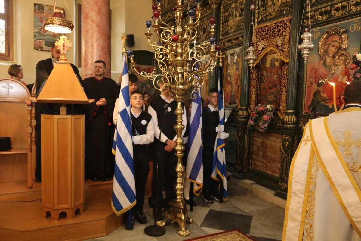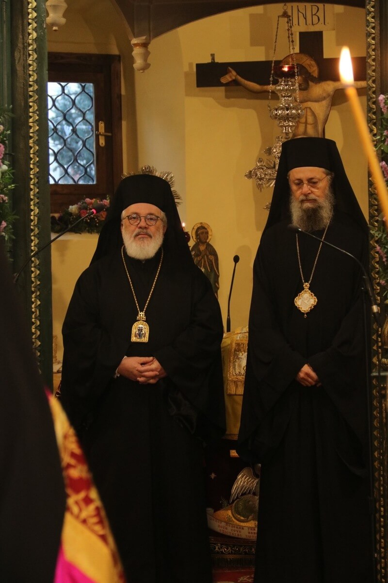 Ο Σεβασμιώτατος Μητροπολίτης κ. Τιμόθεος, χοροστάτησε της ακουλουθίας του Όρθρου, προέστη της Θείας Λειτουργίας και ομίλησε επίκαιρα ανήμερα της εορτής το πρωΐ. Ο Θεοφ. Επίσκοπος Τανάγρας κ. Απόστολος, Βοηθός Επίσκοπος της Αρχιεπισκοπής Αθηνών και Διευθυντής του Γραφείου της Εκκλησίας της Ελλάδος στην Ευρωπαϊκή Ένωση, προέστη του Πανηγυρικού Εσπερινού και ομίλησε εποικοδομητικά.
