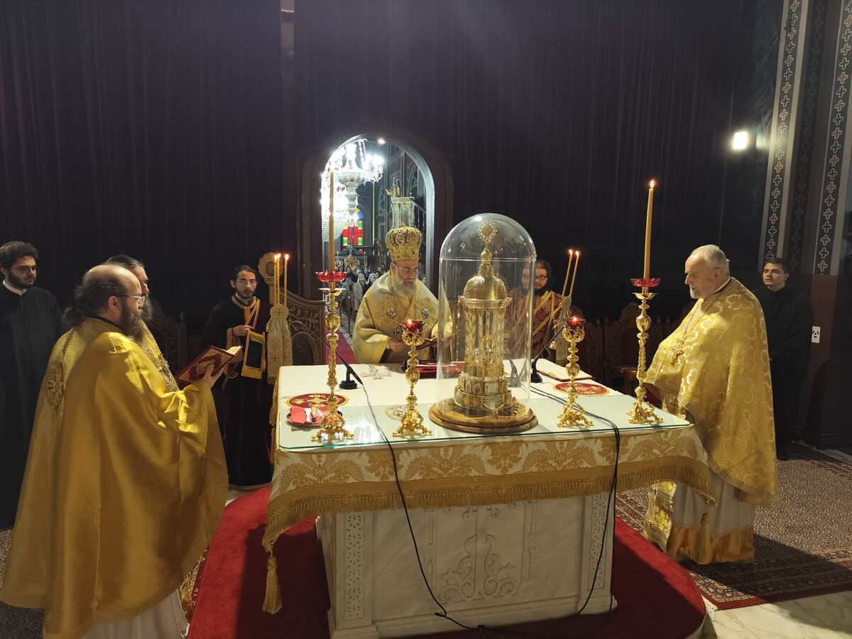 Ο Σεβασμιώτατος Μητροπολίτης κ. Τιμόθεος χοροστάτησε στην ακολουθία του Όρθρου και τέλεσε τη Θεία Λειτουργία, μέσα σε κλίμα ευλάβειας και πνευματικής συγκεντρώσεως. Το πλήρωμα της Εκκλησίας συμμετείχε προσευχητικά στην ευχαριστιακή σύναξη, τιμώντας τον τοπικό μας Άγιο και αντλώντας δύναμη από το παράδειγμά του.