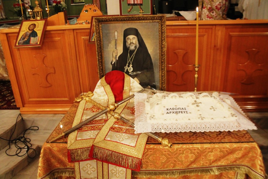 Προ της απολύσεως, τέλεσε ιερά μνημόσυνα υπέρ αναπαύσεως των ψυχών του μακαριστού Μητροπολίτου Θεσσαλιώτιδος και Φαναριοφερσάλων κυρού Κλεόπα και της μακαριστής Ευαγγελίας Ντάφου.