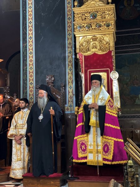 Ακολούθως, τελέσθηκε η ακολουθία του Εσπερινού μετ’ Αρτοκλασίας και θείου κηρύγματος, χοροστατούντος του σεβασμιωτάτου Μητροπολίτου Καλαβρύτων και Αιγιαλείας κ. Ιερωνύμου και συγχοροστατούντος του σεβασμιωτάτου Μητροπολίτου Κίτρους, Κατερίνης και Πλαταμώνος κ. Γεωργίου.
