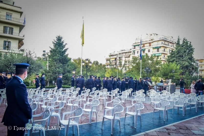 Ἄλλωστε, ἀφ΄ ἧς στιγμῆς οἱ πιστοὶ, ἀπὸ τὴν ὥρα ποὺ εἰσέρχονταν στὸν Ναὸ συνοδεύονταν ἀπὸ ὄργανα τῆς Ἀστυνομίας (εἰκ. 3), τὰ ὁποῖα τοὺς ἀκολουθοῦσαν μέχρι καὶ τὴν ἔξοδο τους ἀπὸ αὐτὸν, δὲν θὰ μποροῦσε νὰ συνεχισθεῖ κατὰ τὸν ἴδιο τρόπο τὸ προσκύνημα πρὶν τὴν ἄφιξη τῆς κ. Προέδρου, ἀλλὰ καὶ κατὰ τὴν διάρκεια τῆς ἐπίσημης Δοξολογίας, ὥστε νὰ μὴν δημιουργηθεῖ συνωστισμὸς ἐκτὸς τοῦ Ναοῦ; Τὶ θὰ ἔπρεπε νὰ γίνει; Τὶς ἡμέρες ἐκεῖνες δὲν εἶχε ἐπιβληθεῖ στὴν πόλη lockdown! Νὰ ἀπαγορευόταν ἐντελῶς ἡ προσέλευση τοῦ κόσμου; Ἐντὸς τοῦ Ναοῦ δὲν ἐπιτρεπόταν ἡ παραμονὴ, ἐκτὸς τοῦ Ναοῦ ἐμποδίζονταν ἡ ἀναμονὴ, ἄς σφράγιζαν λοιπὸν τὸν Ναὸ ἤ ἄς τὸν περιέφρατταν κυκλόθεν σὲ ἀπόσταση 300 μέτρων γιὰ νὰ μὴν δύναται κανεὶς νὰ πλησιάσει!