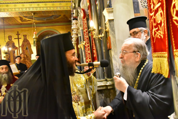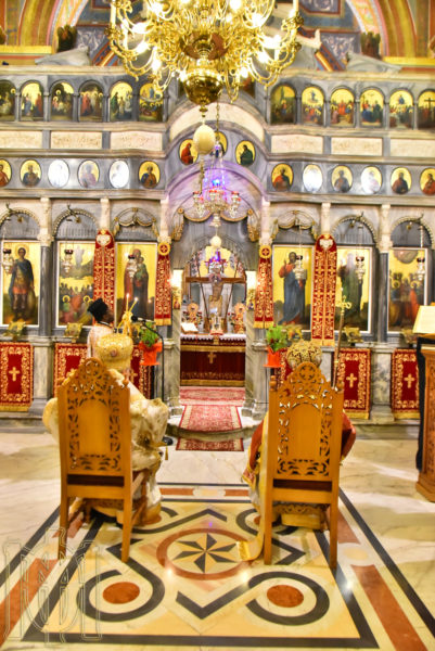 Κατά την ακολουθία του Όρθρου χοροστάτησε ο Σεβ. Μητροπολίτης Φιλίππων, Νεαπόλεως και Θάσου κ. Στέφανος, ενώ της Αρχιερατικής Θείας Λειτουργίας προέστη ο Παναγ. Μητροπολίτης Θεσσαλονίκης κ. Άνθιμος, συλλειτουργούντος του Σεβ. Μητροπολίτου Φιλίππων, Νεαπόλεως και Θάσου κ. Στεφάνου.