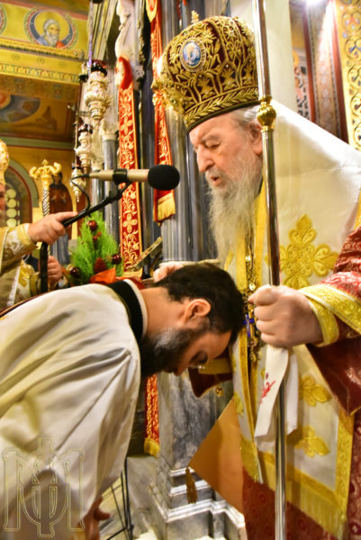 Κατά την διάρκεια της Θείας Λειτουργίας ετελέσθη υπό του Παναγιωτάτου κ. Ανθίμου η εις πρεσβύτερον χειροτονία του ιερολ. Διακόνου π. Τιμοθέου Χριστίδη. Ο π. Τιμόθεος διετέλεσε καθηγητής στην εκπαίδευση και τυγχάνει πτυχιούχος του Τμήματος Φιλολογίας της Φιλοσοφικής Σχολής του Αριστοτελείου Πανεπιστημίου Θεσσαλονίκης, κάτοχος μεταπτυχιακού διπλώματος του Τμήματος Θεολογίας της Θεολογικής Σχολής του Αριστοτελείου Πανεπιστήμιου Θεσσαλονίκης με ειδίκευση στην Εκκλησιαστική Ιστορία και προπτυχιακός φοιτητής της ιδίας Σχολής. Κατά τα τρία έτη της διακονίας του υπηρέτησε στους Ιερούς Ναούς Αγίου Δημητρίου – Πολιούχου και Αγίων Τριών Ιεραρχών Βούλγαρη.