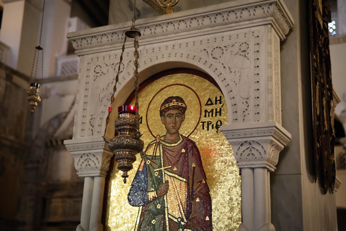 Φέτος, ειδικότερα, οι ακολουθίες θα επεκταθούν έως τις 3 Νοεμβρίου, όταν θα αναχωρήσει η εικόνα της Παναγίας Σουμελά και θα λάβει χώρα η τελετή καθαγιασμού του μύρου. Το μύρο καθαγιάζεται σε κολυμπήθρα ακριβώς δίπλα στο μύρο που αναδύεται από τα ιερά λείψανα του αγίου. Αυτή η ημέρα είναι και η μοναδική που ανοίγει η λάρνακα του Αγίου από τον Μητροπολίτη Θεσσαλονίκης, ενώ ο αριθμός των προσκυνητών, από την Ελλάδα και το εξωτερικό, ξεπερνά τις είκοσι χιλιάδες. Γι’ αυτόν τον λόγο και δεν είναι εφικτό να παραμείνει η λάρνακα ανοιχτή για πολλή ώρα. Ωστόσο, αρκετοί ιερείς διανέμουν το μύρο στους πιστούς εντός και εκτός του ναού».