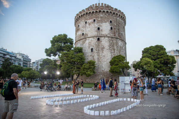 Με τον αριθμό 100 να σχηματίζεται από ισάριθμα φαναράκια μπροστά στο εμβληματικό μνημείο της πόλης, τον Λευκό Πύργο, τίμησε η Θεσσαλονίκη τη θλιβερή επέτειο της Μικρασιατικής Καταστροφής.