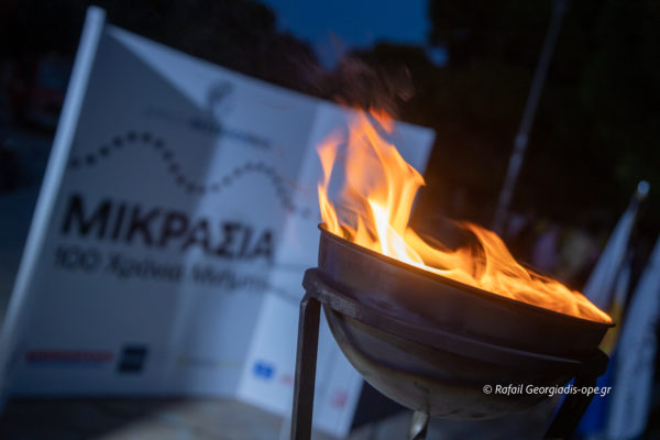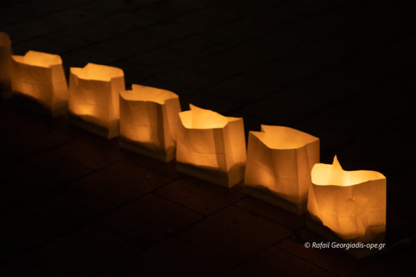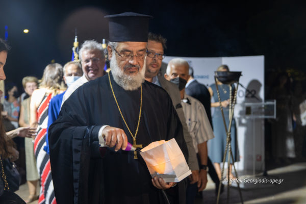 Σε μια κίνηση γεμάτη συμβολισμούς, εκατό φαναράκια χρησιμοποιήθηκαν, για να σχηματιστεί ο αριθμός 100– όσα και τα χρόνια από τη Μικρασιατική Καταστροφή.