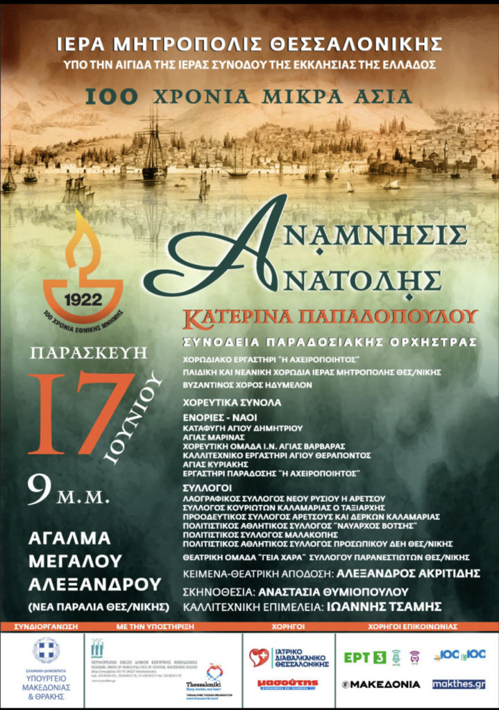 Η σημαντική αυτή Εκδήλωση, τελούσα υπό την αιγίδα της Ιεράς Συνόδου της Εκκλησίας της Ελλάδος, πραγματοποιήθηκε σε συνδιοργάνωση της Ιεράς Μητροπόλεως Θεσσαλονίκης με το Υπουργείο Εσωτερικών (τομέας Μακεδονίας – Θράκης), καθώς και με την πολύτιμη στήριξη της Περιφέρειας Κεντρικής Μακεδονίας, της Περιφερειακής Ένωσης Δήμων Κεντρικής Μακεδονίας, του Δήμου Θεσσαλονίκης, της ΕΡΤ 3 και άλλων φορέων, στα πλαίσια της αφιέρωσης από την Εκκλησία της Ελλάδος του έτους 2022, στην επέτειο συμπλήρωσης 100 ετών από την Μικρασιατική Καταστροφή του 1922 και μεταξύ πλειάδας εκδηλώσεων Μνήμης, για τις οποίες έχει προγραμματισθεί εκ της Ιεράς Μητροπόλεως Θεσσαλονίκης η διοργάνωση, η υλοποίηση, ή η υποστηρικτική συμμετοχή και που έχουν ήδη ξεκινήσει να πραγματοποιούνται.