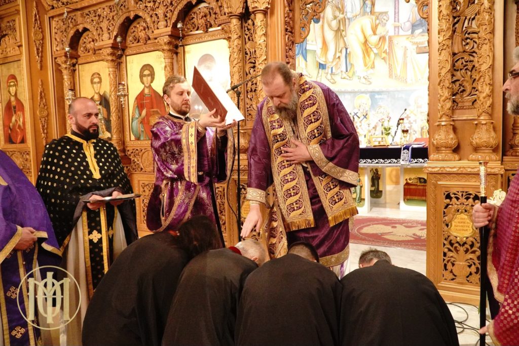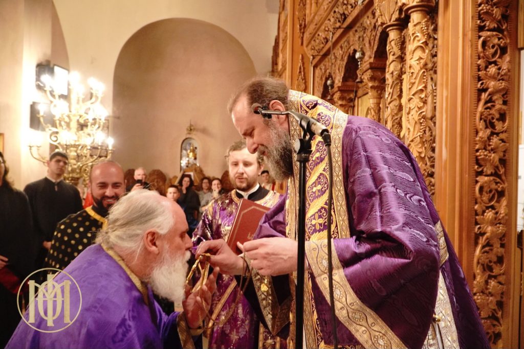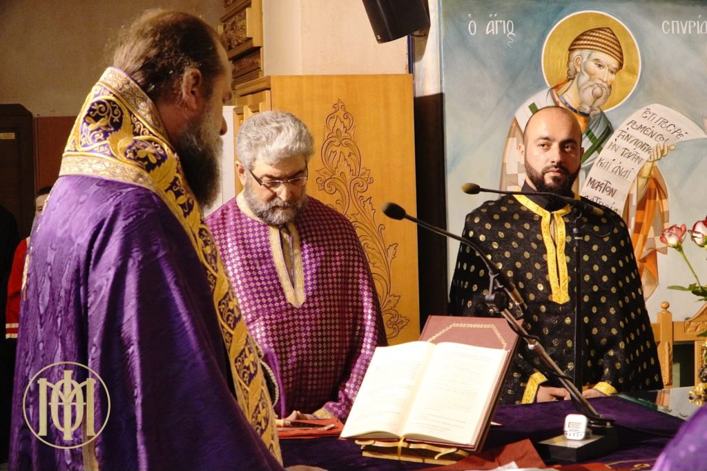 Προ της απολύσεως, ο Μητροπολίτης κ. Φιλόθεος, χειροθέτησε σε αναγνώστες 4 πιστούς οι οποίοι διακονούν στα ιερά αναλόγια του Ιερού Ναού. Επίσης χειροθέτησε και έδωσε το οφφίκιο του Πρωτοπρεσβυτέρου στον π. Σιλουανό Βοντετσιάνο, εφημέριο επί πολλά έτη στον Ιερό Ναό και κατόπιν κήρυξε τον θείο λόγο στο εκκλησίασμα και αναφέρθηκε στην εορταζομένη αγία της Εκκλησίας μας, την αγία Ματρώνα η οποία μαρτύρησε στην πόλη.