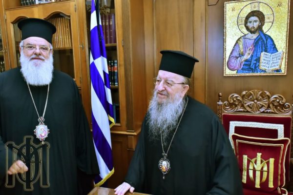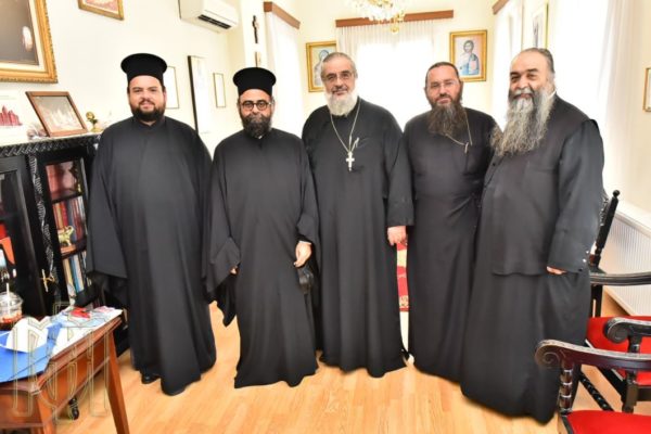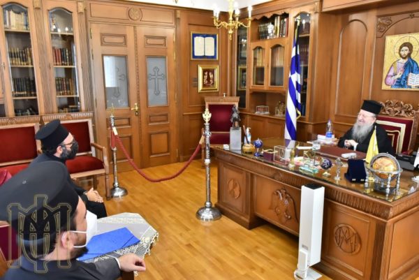 Την Δευτέρα 23 Αυγούστου 2021 ο Παναγιώτατος Μητροπολίτης Θεσσαλονίκης κ. Άνθιμος δέχθηκε στα Γραφεία της Ιεράς Μητροπόλεως Θεσσαλονίκης μαζί με τους υπόλοιπους επισκέπτες τους Σεβασμιωτάτους Μητροπολίτες Βρεσθένης κ. Θεόκλητο και Γαλλίας κ. Δημήτριο, καθώς επίσης και τον Πανοσιολ. Αρχιμανδρίτη π. Βαρθολομαίο Αντωνίου – Τριανταφυλλίδη, κληρικό της Ιεράς Αρχιεπισκοπής Αθηνών και Γραμματέα της Ιεράς Συνόδου της Εκκλησίας της Ελλάδος.