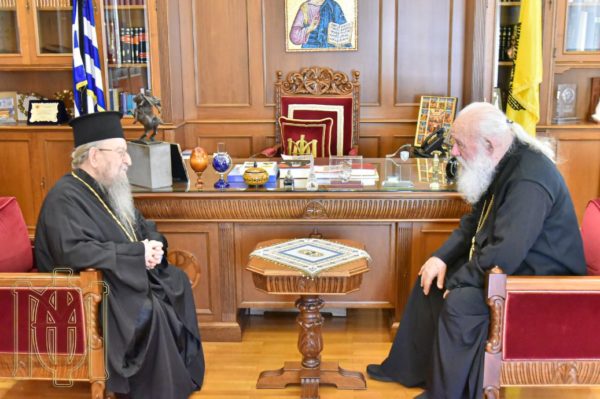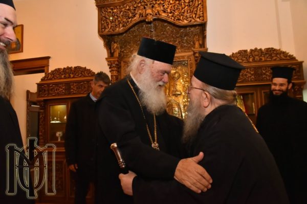 Ο Αρχιεπίσκοπος είχε σύντομη συνομιλία με τον Μητροπολίτη Θεσσαλονίκης με τον οποίο συζήτησαν θέματα κοινού ενδιαφέροντος.