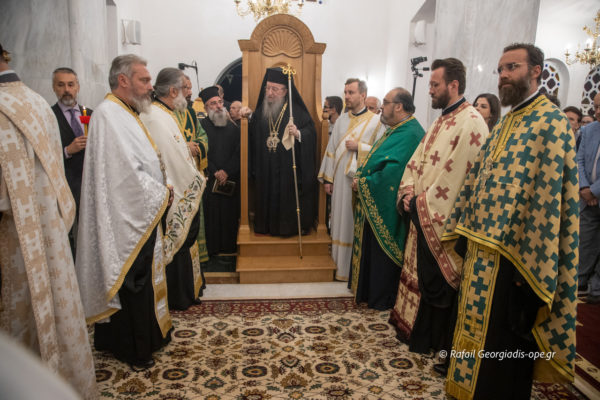 Την παραμονή της εορτής στην ακολουθία του πανηγυρικού Αρχιερατικού Εσπερινού χοροστάτησε ο Παναγιώτατος Μητροπολίτης Θεσσαλονίκης κ. Άνθιμος.