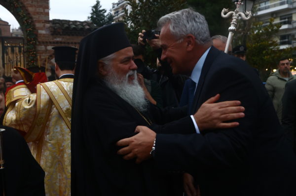 Παρά το γεγονός όμως, ότι σας αντικρίζουμε πρώτη φορά επίσημα, έχουμε τη χαρά να γνωρίζουμε ήδη το σημαντικό έργο που έχετε επιτελέσει όλα αυτά τα χρόνια, από τις θέσεις ευθύνης που σας έχει αναθέσει η Εκκλησία. Στεκόμαστε λοιπόν, δίπλα σας, προσδοκώντας στη στενή και καλή συνεργασία. Το πεδίο συνεργασίας και συμπόρευσης είναι βεβαίως, η κοινωνία, οι συνάνθρωποί μας, και ο ιστορικός αυτός τόπος, η Θεσσαλονίκη που είναι κομβικός για την Περιφέρεια Κεντρικής Μακεδονίας.