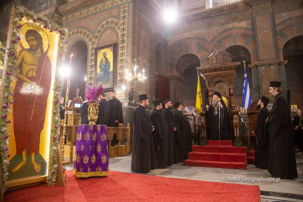 Τον Παναγιώτατο πλαισίωσαν ο προϊστάμενος του ναού, αρχιμ. Ειρηναίος Βογιατζής, ο αρχιμ. Πολύκαρπος Κάστιζας, ο Πρωτ. Παλαιολόγος Μάνου, ο Πρωτ. Νικόλαος Ζουγκανάρου και ο ιεροδιάκονος Αλέξανδρος Νικολόγιου.