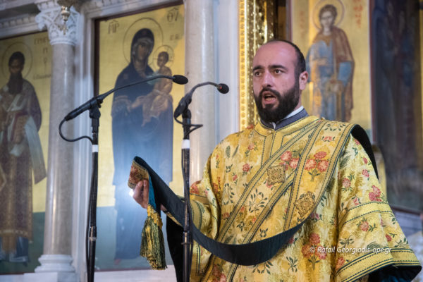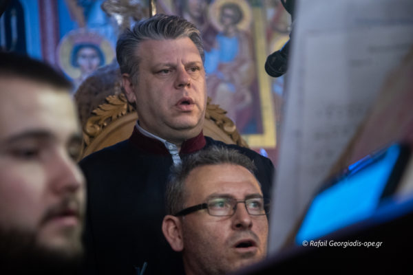 Τους βυζαντινούς ύμνους της εορτής απέδωσαν οι ιεροψάλτες του Ιερού Μητροπολιτικού Ναού, κ. Ιωάννης Λιάκος Πρωτοψάλτης και o κ. Παναγιώτης Χοβαρδάς Λαμπαδάριος.