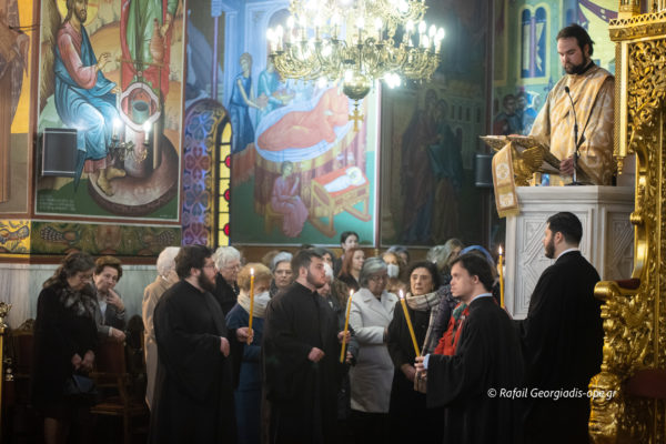 Τον Σεβασμιώτατο πλαισίωσε ο Πρωτοσύγκελλος της Ι. Μητροπόλεως Θεσσαλονίκης Αρχιμ. Ιάκωβος Αθανασίου, ο Γεν. Αρχιερατικός Επίτροπος Αρχιμ. Φώτιος Ζαρζαβατσάκης και πλειάδα ιερέων και διακόνων.