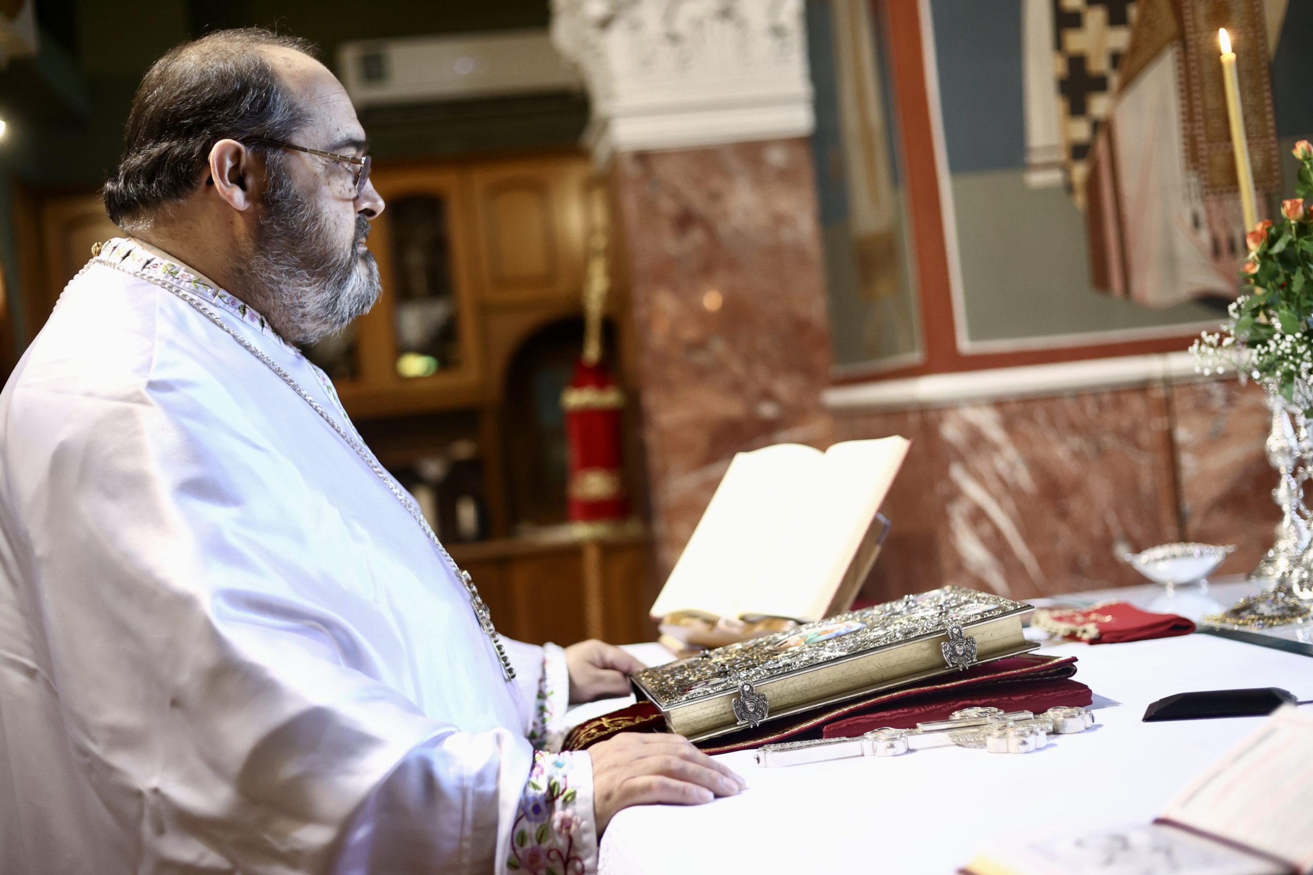 Τον Θεοφιλέστατο πλαισίωσαν ιερείς και διάκονοι της Ιεράς Μητροπόλεως και της Ι. Μ. Βλατάδων.