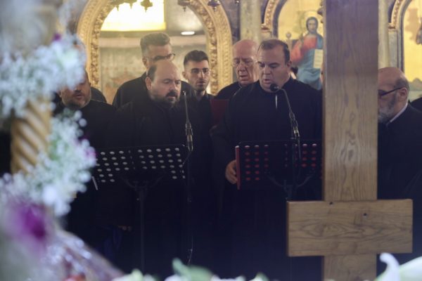 Τους ύμνους απέδωσαν ιεροπρεπώς και με κατάνυξη οι χοροί των ιεροψαλτών, με προεξάρχοντα στον δεξιό χορό τον κ. Στυλιανό Ζαχαρίου και στον αριστερό τον κ. Χρήστο Τογκαριδη.
